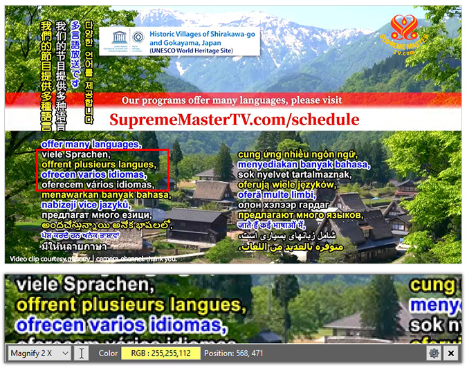 根据您的字幕,调整 Magnifixer 至适当大小与位置。(详见范例图片)放置鼠标靠近您想要放大的字幕上。